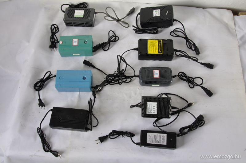 24V,36V,48V,60V,72V, ventillátoros, intelligens töltő, többféle csatlakozóval.